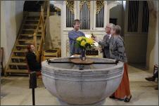 Anna-Maria Meussling überreicht mir, zusammen mit ihrem Gatten Rüdiger Meussling, nach dem Konzert 2012 in Prezien ihren Achat zum polieren von Blattgold. Er stammt schon von ihrem Vater und wird so in sorgsame Hände gegeben und wohl für manch weitere Orgelteile in Gebrauch bleiben.